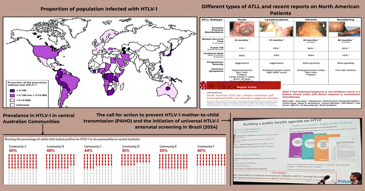 Tracking HTLV-1’s global impact: from its consequential rare disease (ATLL) in North America to the latest Australian epidemic. Highlights efforts by WHO/PAHO on mother-to-child transmission prevention and universal antenatal screening.