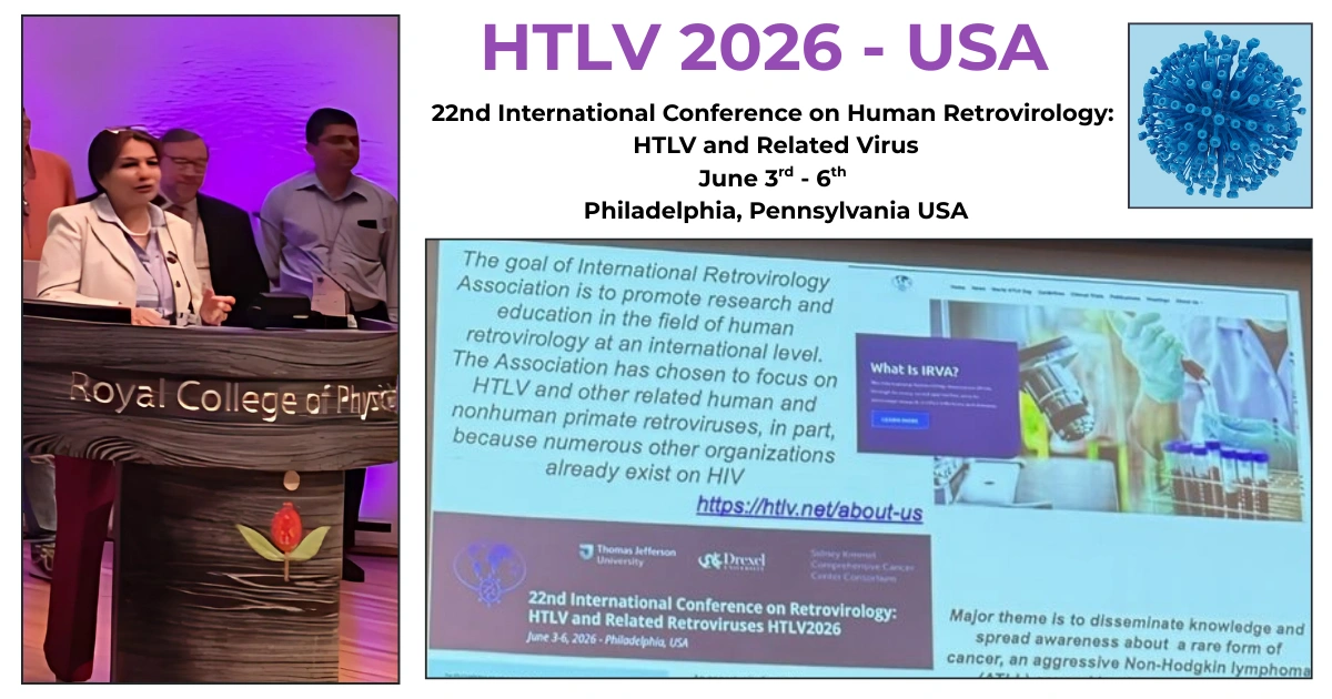 “HTLV affects millions of people globally yet remains largely unknown to the public and underrepresented in medical and research arenas,” adds Dr. Jain, who serves as Secretary of the International Retrovirology Association (IRVA, https://htlv.net/), and the Chair of the 22nd International Conference on Human Retrovirology (https://htlv2026.org) to be held in Philadelphia in 2026 from June 3-6. Dr. Jain quotes, “By bringing together patients, caregivers, and researchers from around the world – particularly those from regions where HTLV is endemic – we can foster collaboration, share critical knowledge, and accelerate progress toward prevention and treatment options.”